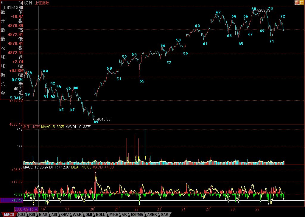 技术上,一个新的、从62开始的5分钟中枢已经基本成型,因此,该中枢的后续走势,决定了短线行情的发展。