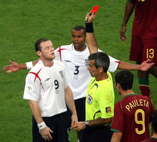 且不说葡萄牙60多分钟的11对10表现得如何恶劣,看着那白色宿命地走向黑色的结局,一切都那么莎士比亚,英国人莎士比亚地死去继续着已经传统的轨迹。而那八年里红牌的轮回,在这白色的黑色宿命中,已成了一个重要得不再重要的情节,这情节无非重复着这样老掉牙的故事:最值得期待的往往就是毒药,1998年的贝壳、2006年的鲁尼,同一曼联生出的果子,有着相同的黑色基因,重复着一个相同情节的故事,连最后相同地死于点球都一模一样,看来命运之神也是很懒惰的。